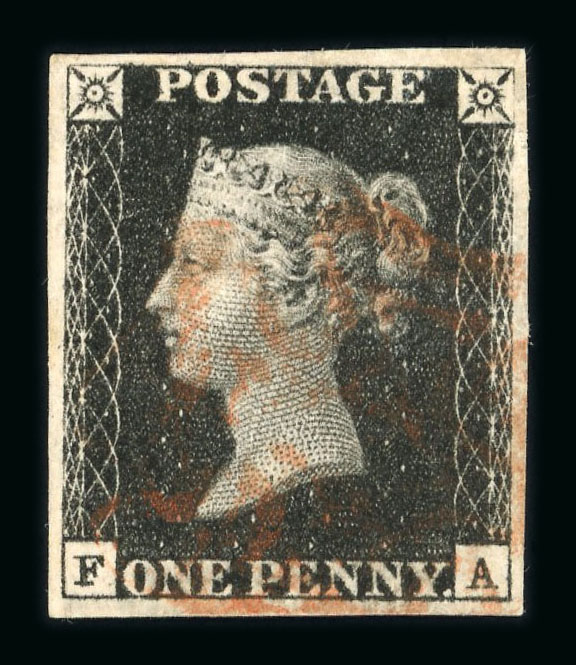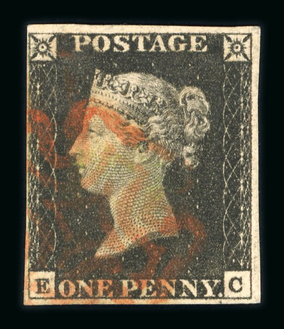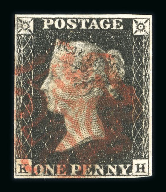 1840 1d black pl. 10 KH with 4 clear margins and red MC (scarcer on this plate). (S.G. Spec. AS66h, £1'500). (Image 1)