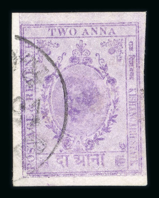 1912 2a lilac "TWO ANNA" on thick white chalk surfaced paper, imperf., used, fine to large margins, tiny thin spots and minor surface rubbing, fine and scarce (S.G. £1'200). (Image 1)