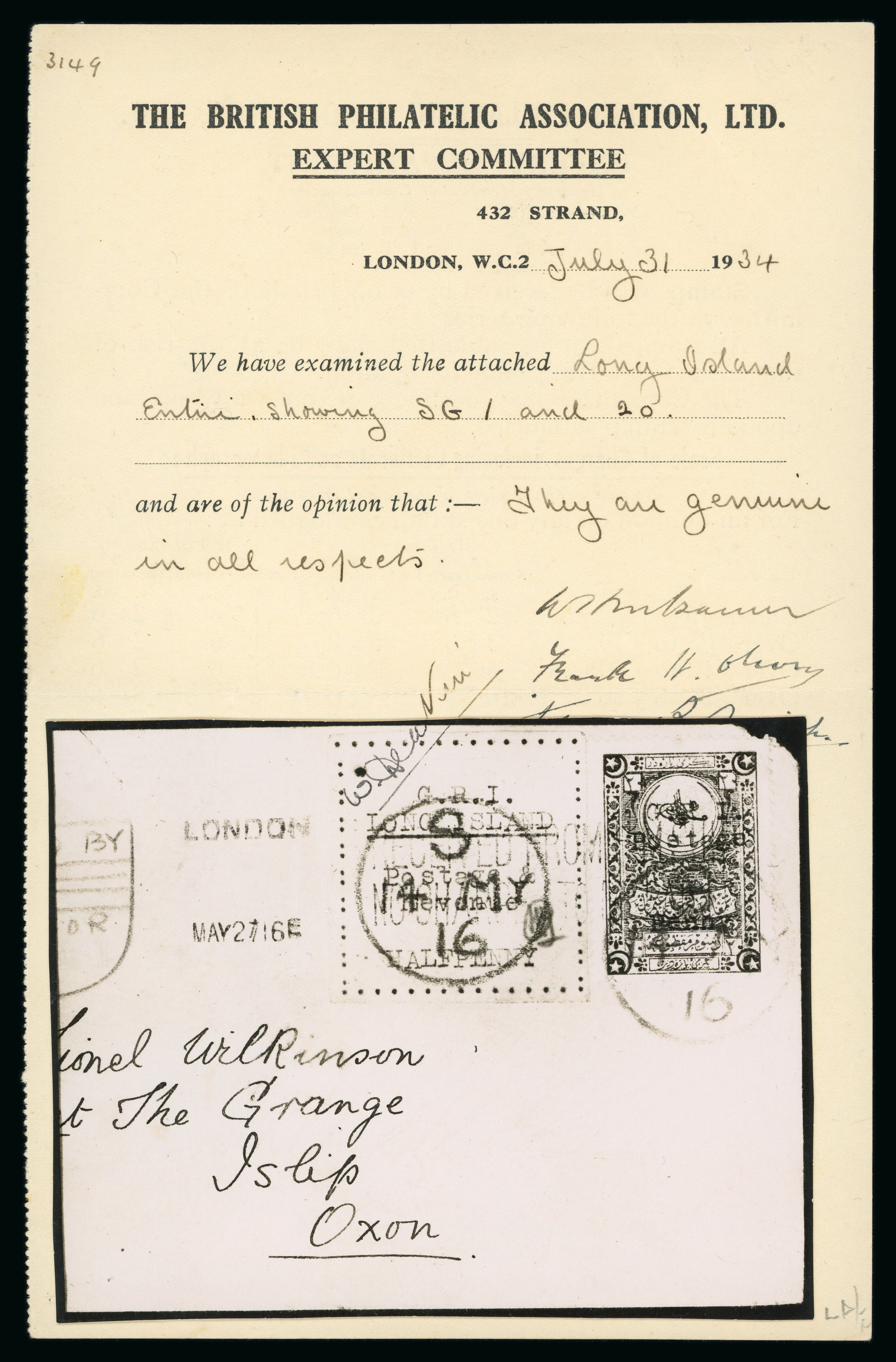 1916 2d black on thin wove paper, initialled in red ink, unused without gum as issued, showing variety "L" in "LONG" doubled, thin, fine and very rare, unique with this variety; cert. Gibbs (2002) (S.G. £2'500 for normal stamp).