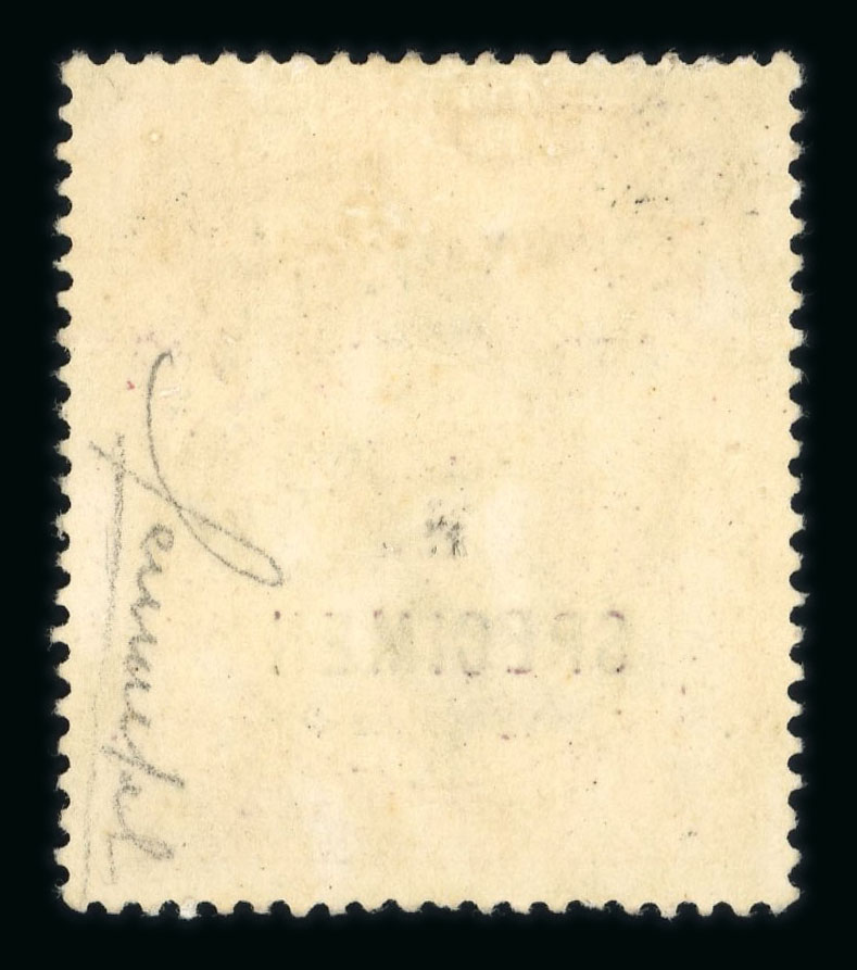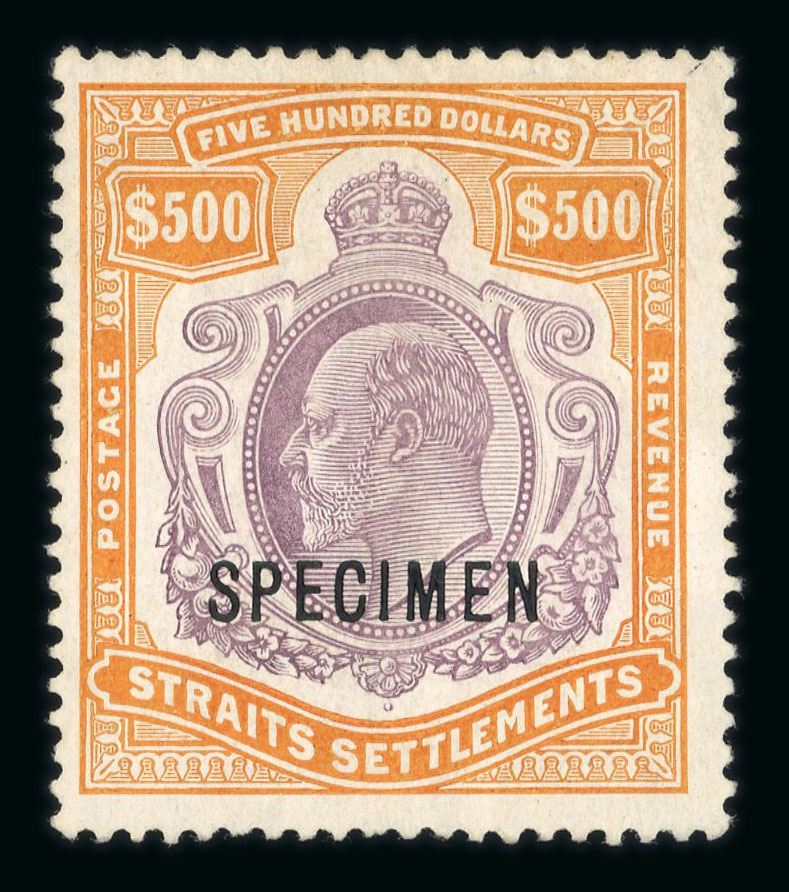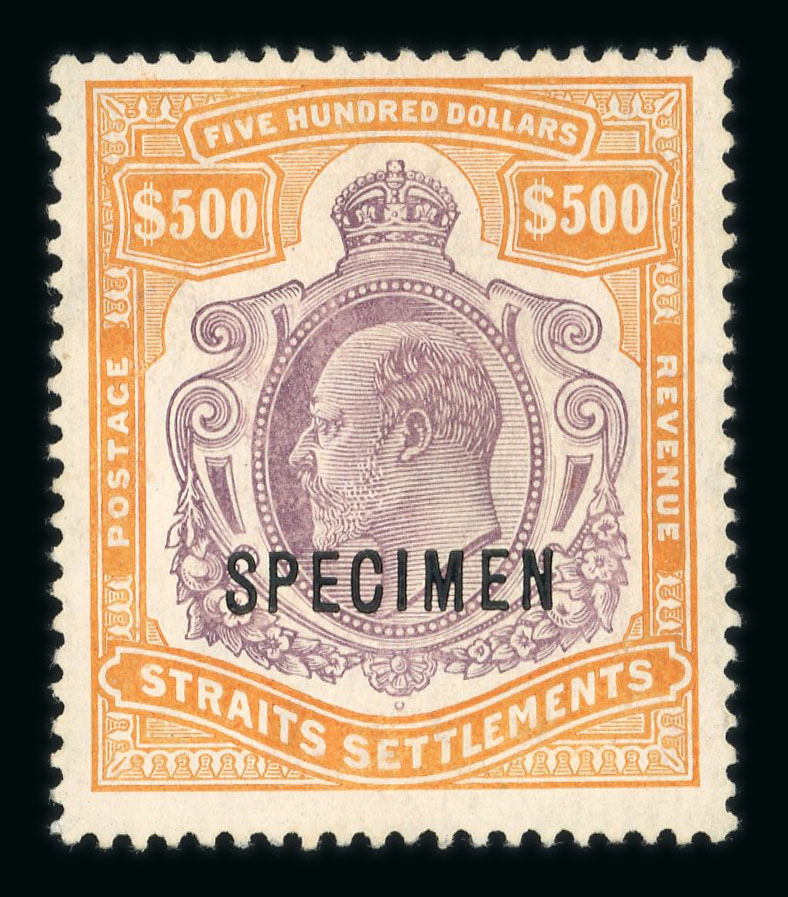 1906-12 $500 purple and orange optd SPECIMEN mint with large part o.g., a superb example (signed) (S.G. £5'000). (Image 1)