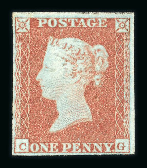 1841 1d. red-brown, CG, showing trace of hair on plate variety, good to large margins, unused with part gum, fine. (Image 1)