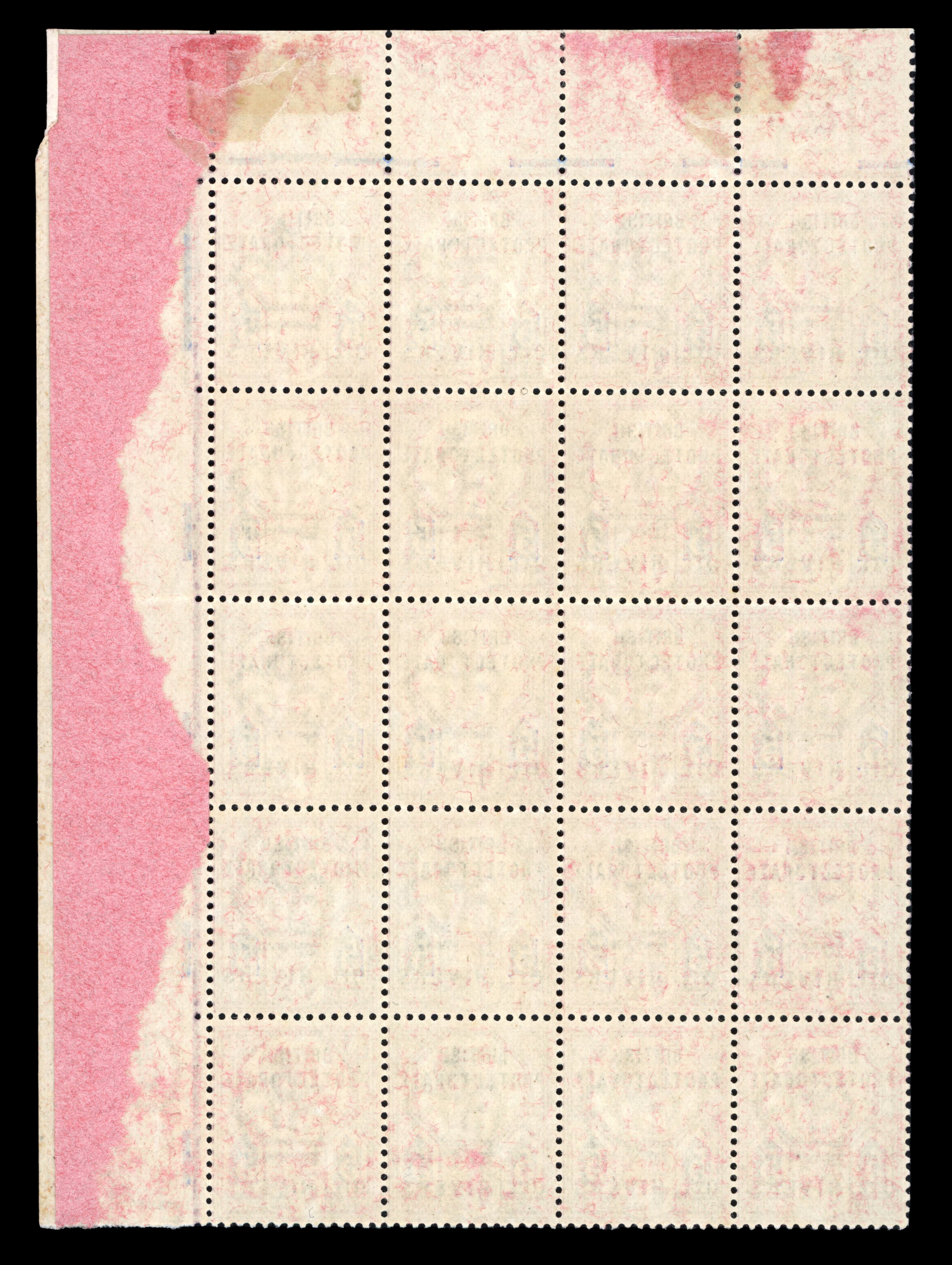 1892-94 overprinted (type 1) 1/2d vermilion, 1d lilac, 2 1/2d purple on blue and 5d purple and blue each in mint marginal blocks of 20, also 2d green and carmine in marginal block of 25, a little light paper adhesion and traces of red