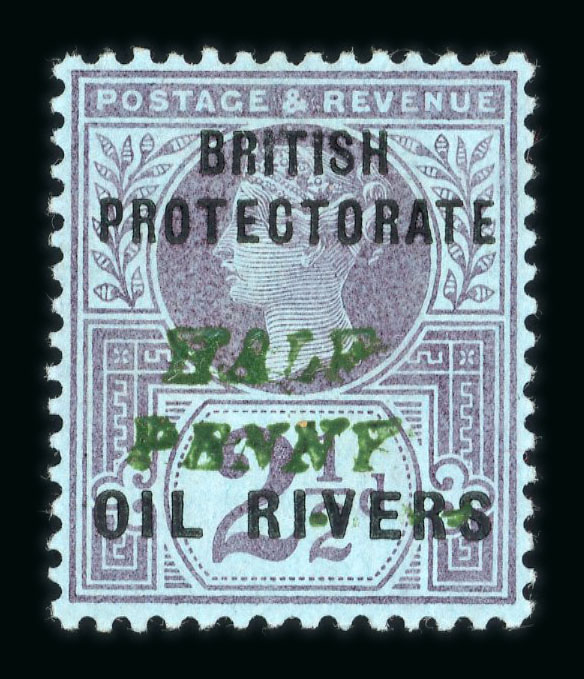 1893 Old Calabar provisional 1/2d on 2 1/2d type 10 surch. in green, mint, very fine (S.G. £550). (Image 1)