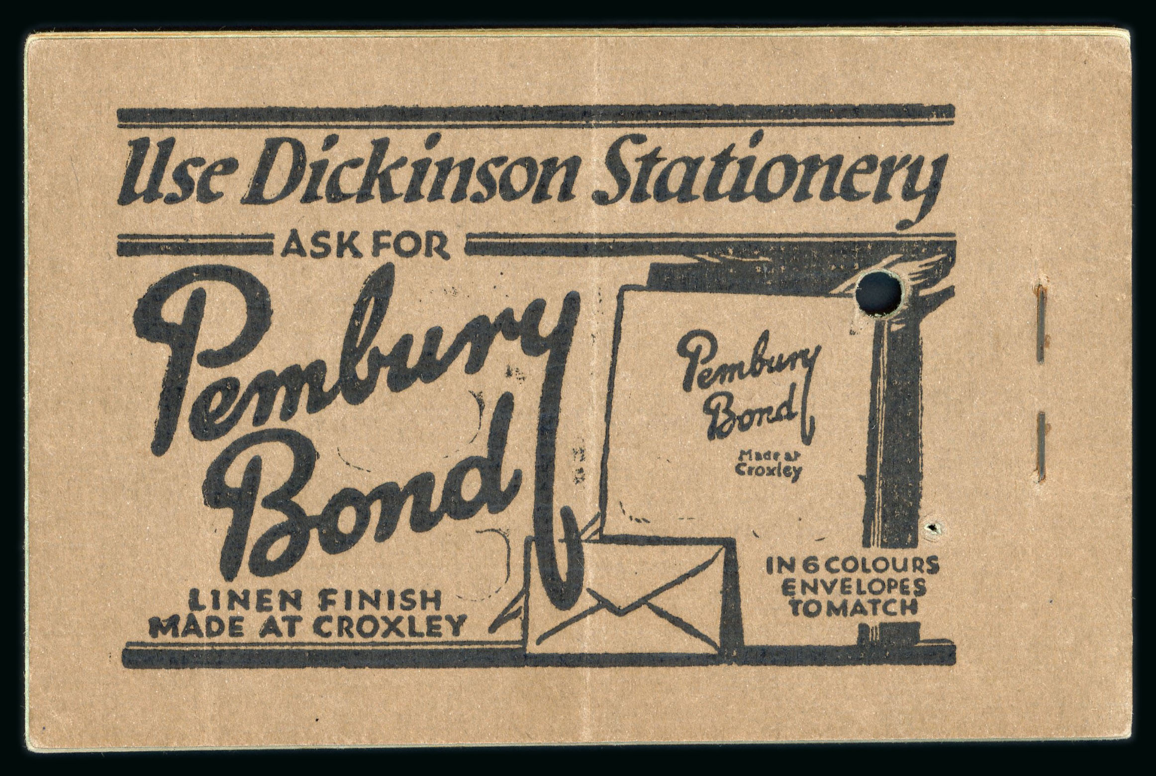 Booklet: 1928 2s specimen booklet (panes with bars and adverts on selvedge) produced by the General Post Office department, complete with punch hole and each pane cancelled "9.NOV 1926 GENERAL POST OFFICE, WELLINGTON". The first booklet