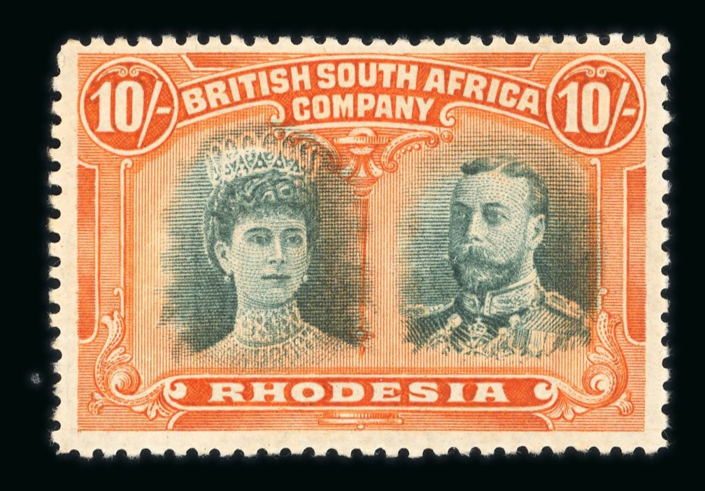 1897 Coat of arms and Makalolo chiefs £10 black and yellow, perfectly used, multiple signatures, rare and fine (SG £3'500). (Image 1)