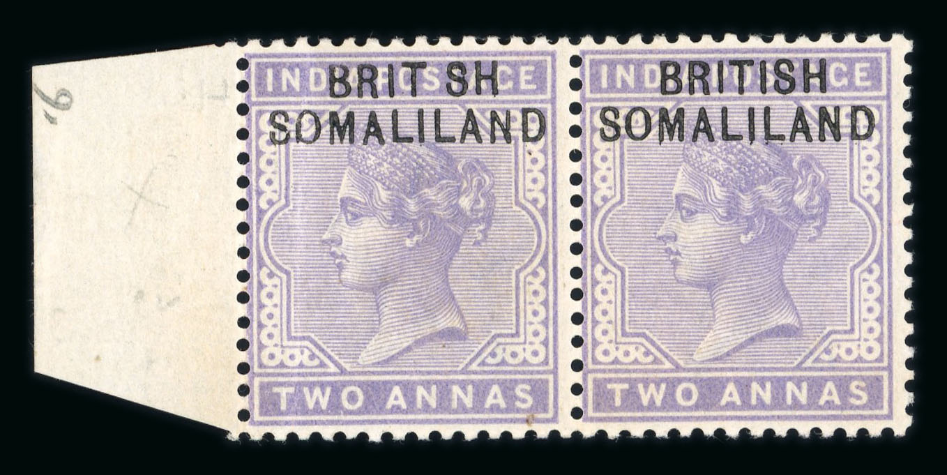 1903 (June) 2a. marginal pair, one variety missing “I” in ‘BRITISH’, mint, minor creasing, otherwise fine (S.G. £650). (Image 1)