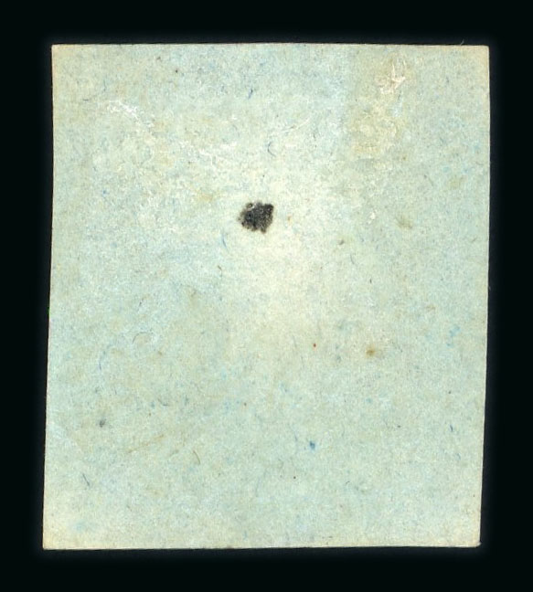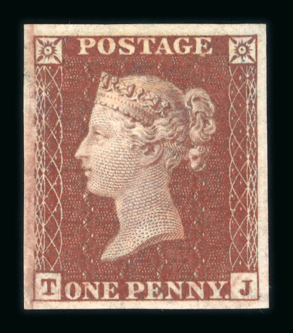 1854 1d red-brown die I on blued paper imprimatur lettered TJ with four margins, a fine example. (Image 1)