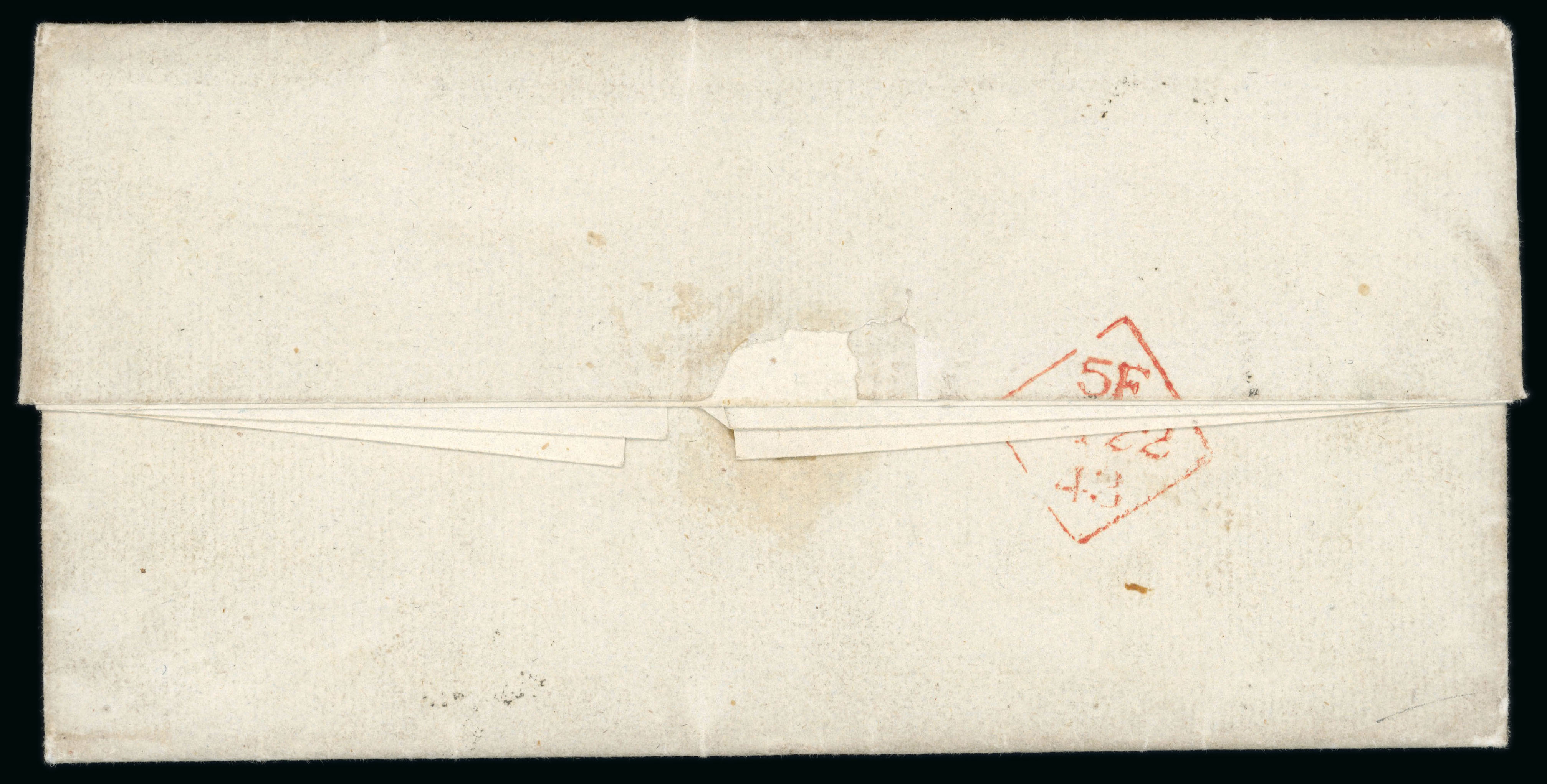 1837 (15.9) Folded entire from London to Dublin, bearing clear oval red POSTAGE/NOT PAID (DF No.214), redirected from Dublin to Foxrock, very fine and scarce (Image 1)