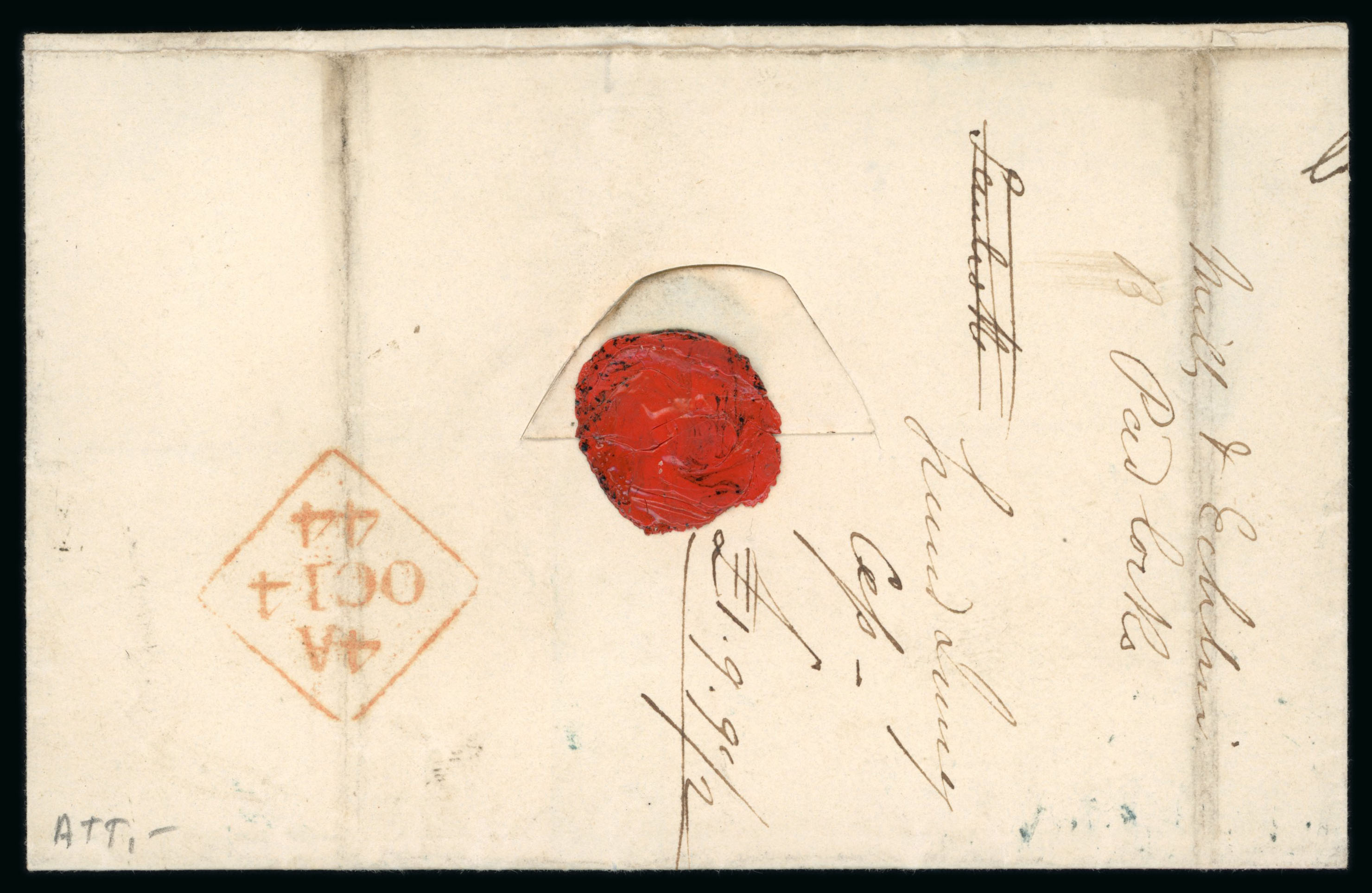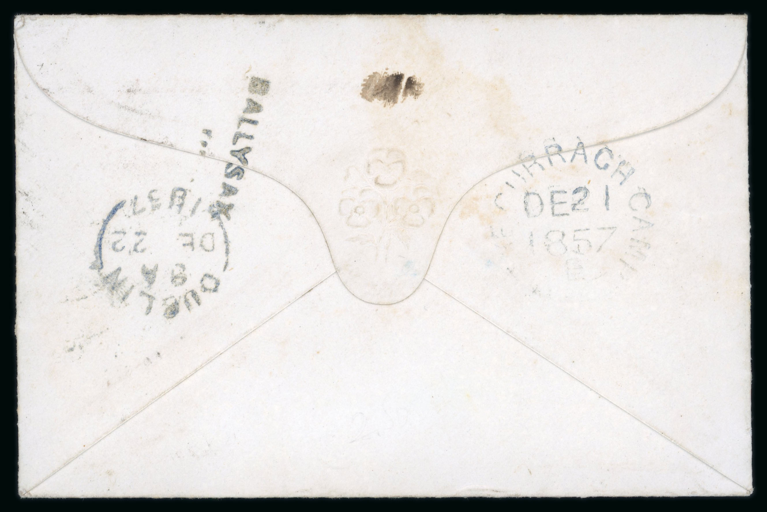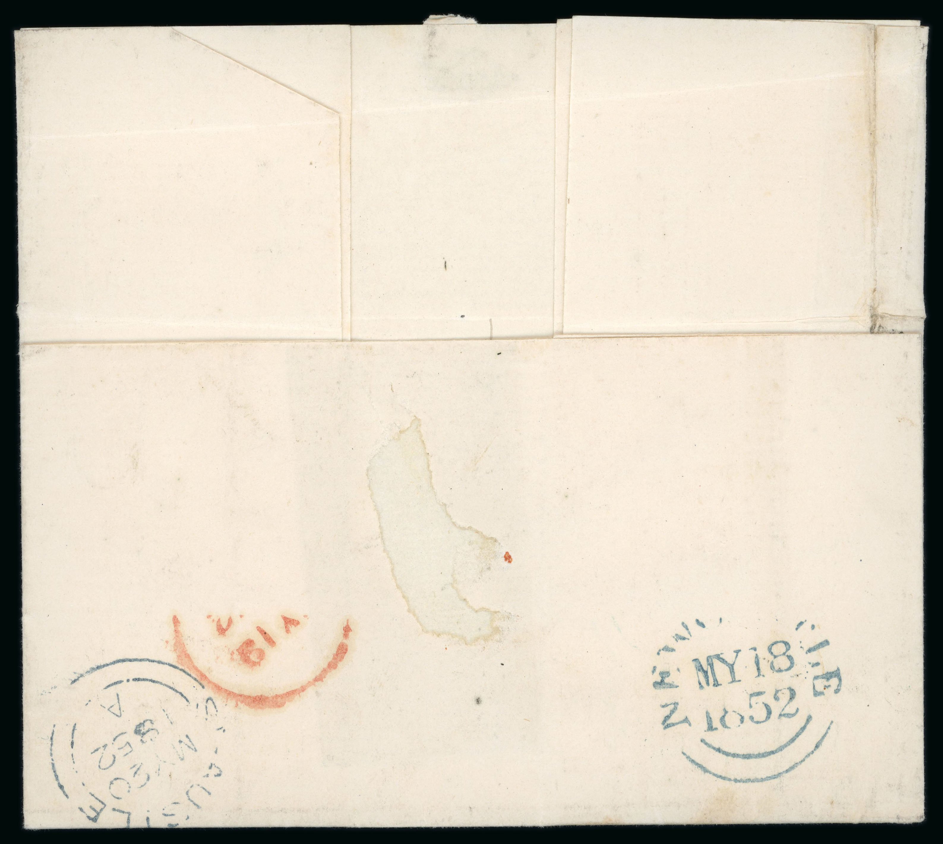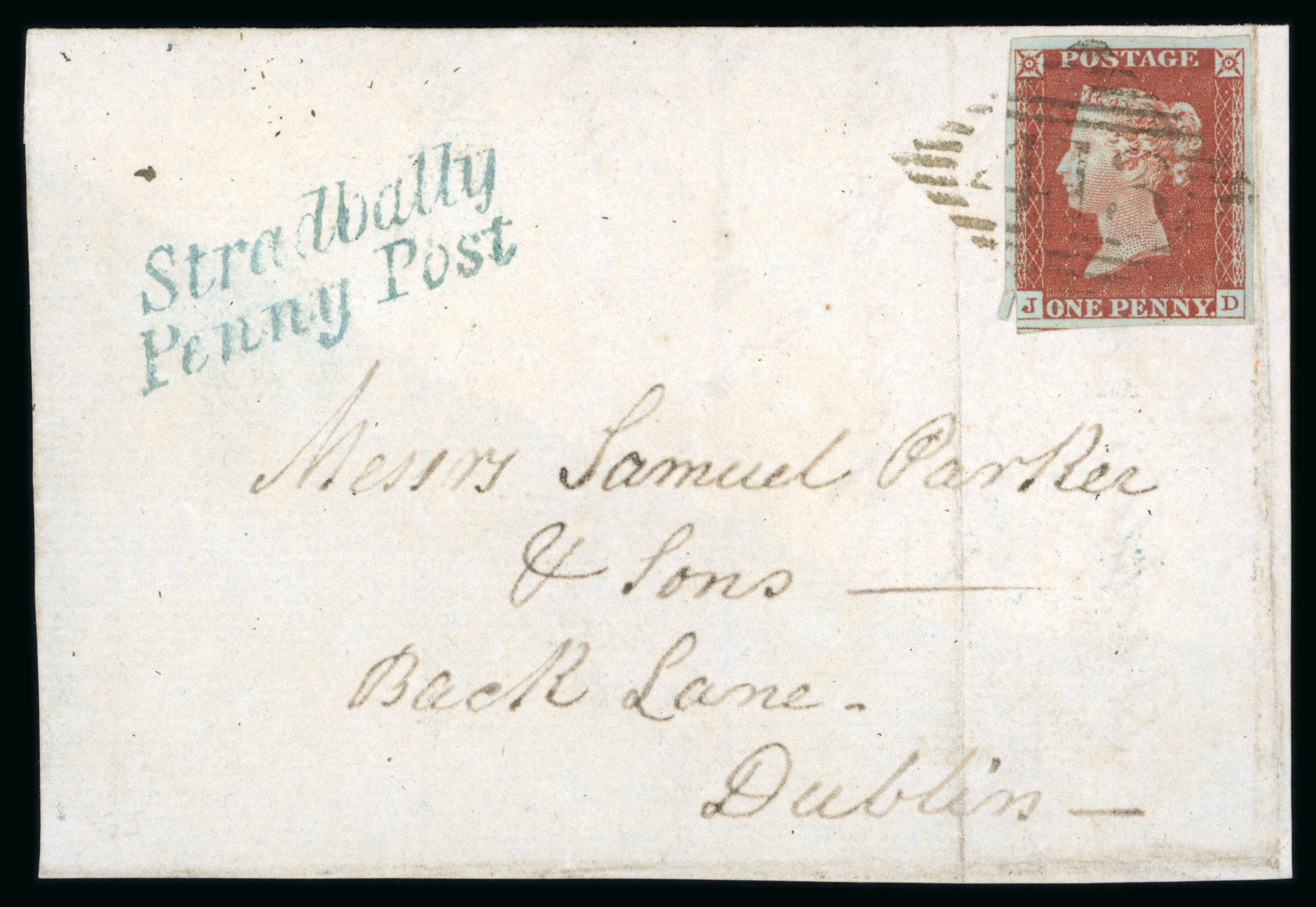 Limerick - Ardagh: 1852 Folded entire to Cornwall, franked 1841 1d red, tied by superb diamond number "353 of Newcastle West in transit, showing on reverse superb strike of the sans serif ARAGH type 2A receiver in blue, the only example