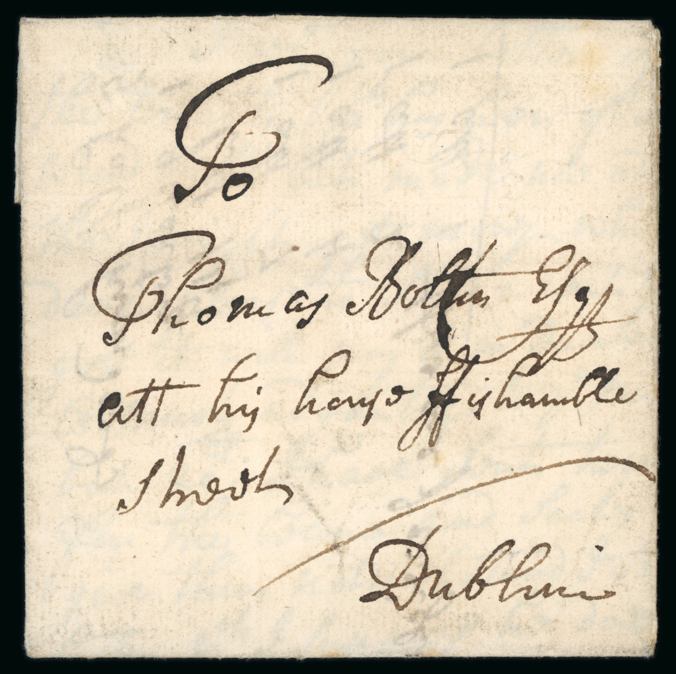 black, ARDEE/PENNY POST (2) (one ex. Fred Dixon), COLLON in blue, 1760 DROGHEDA, DROGHEDA three types, DROGHEDA/PENNY POST (2), PAID AT DROGHEDA/1d in red, abbreviated 1734 D.DALK in black, DUNDALK (6) in red and black, PAID AT DUNDALK/1d in red (3),