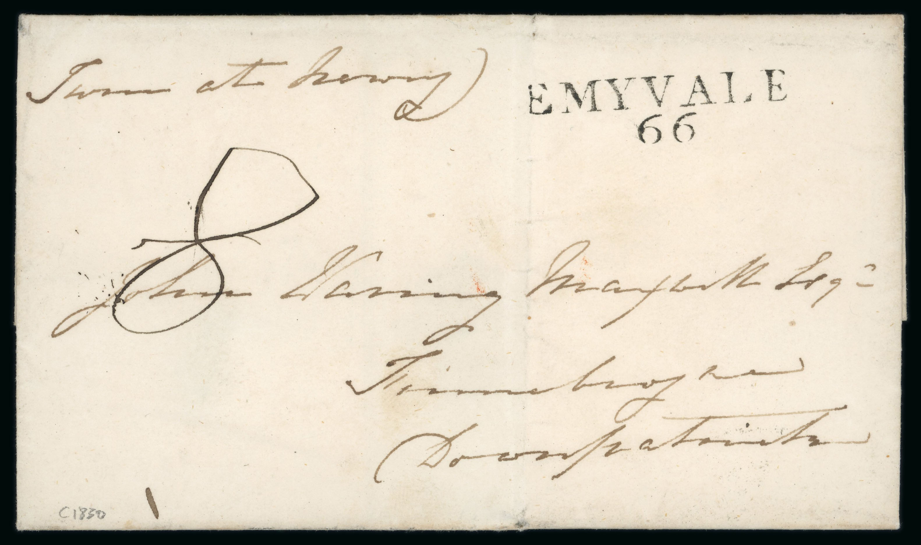 letter of 1831 addressed to Glenmore Castle, Ashord, plus 1850 envelope from Ashford addresed to John Synge the playwright's grandfather etc., all strikes are fair to very fine, a scarce group (6) (Image 1)
