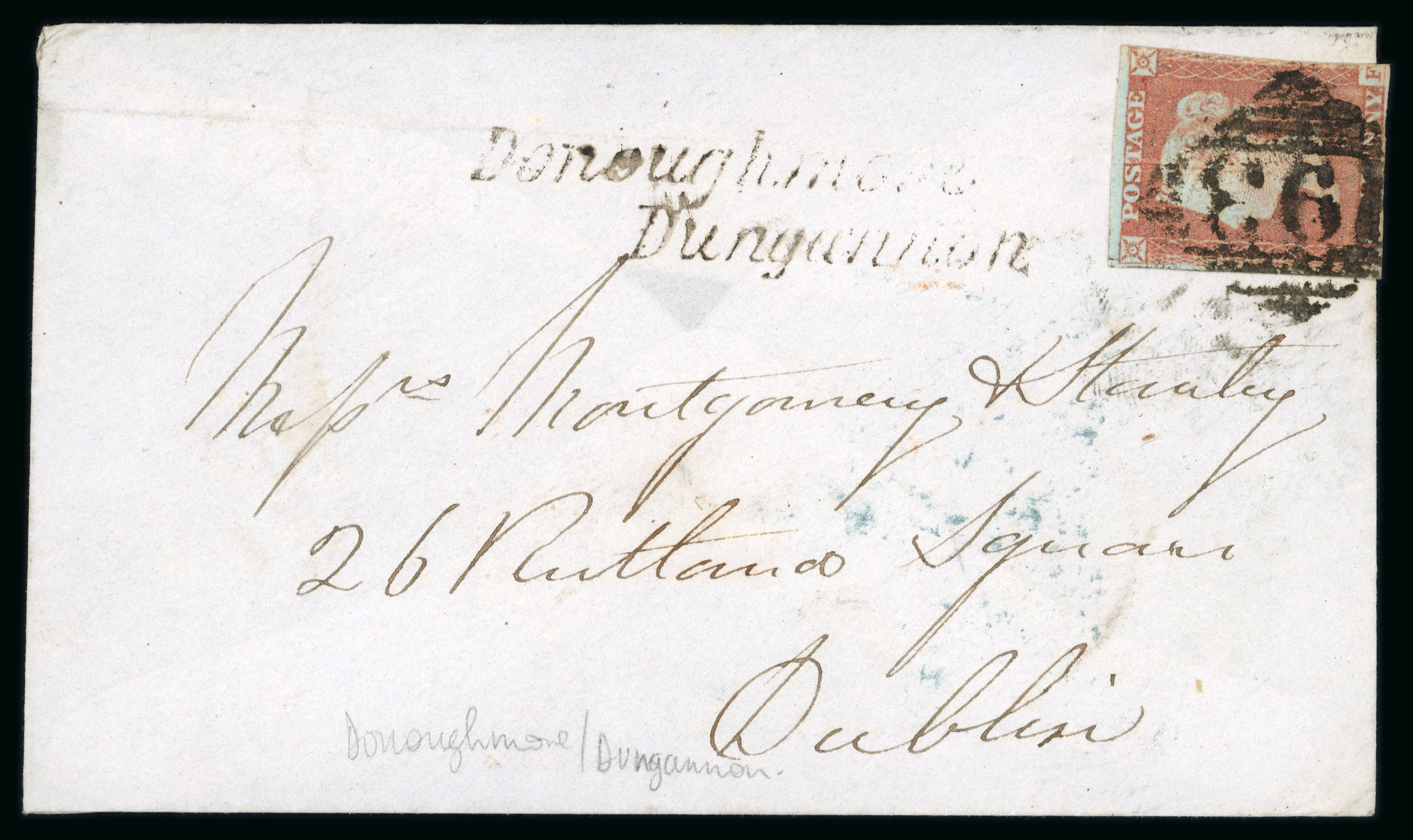 Offaly - Banagher: 1802 Folded entire to Mountjoy Square, Dublin, showing on face clear strike of the linear BANAGHER hs in black, with a manuscript "a" (alphabet window) indicating that the cover had been missorted to the postman's walk