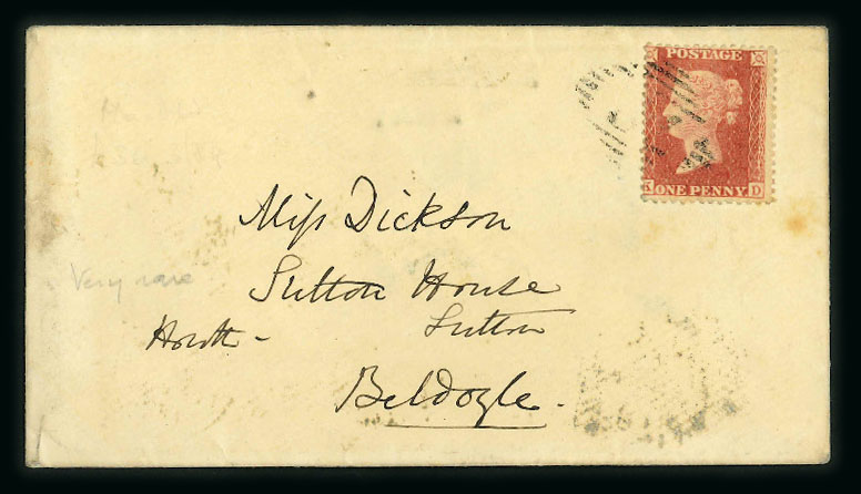 1870 (11.7) Folded entire from Dublin to London, franked 1d red, tied Dublin duplex, showing the Pearson Hill "Pivot" machine cancel alongside, very fine