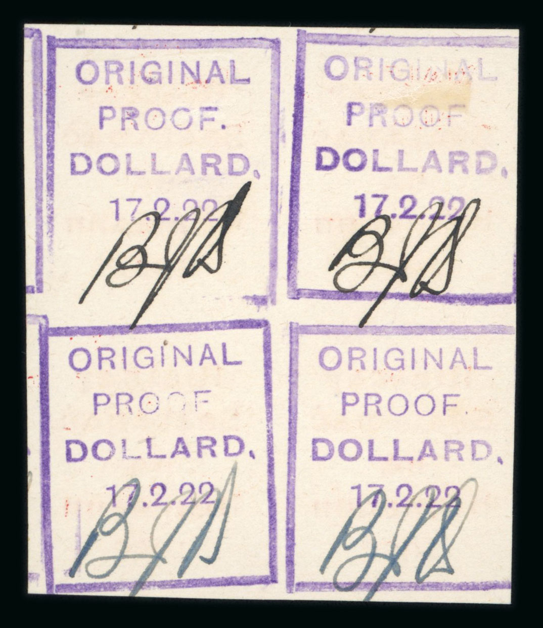 backstamp, both in blocks of four, among others. A fine and varied selection showing different stages and characteristics of the overprint process. Mixed to very fine – an appealing lot for the specialist. (30 proofs) (Hib. €900+) (Image 1)