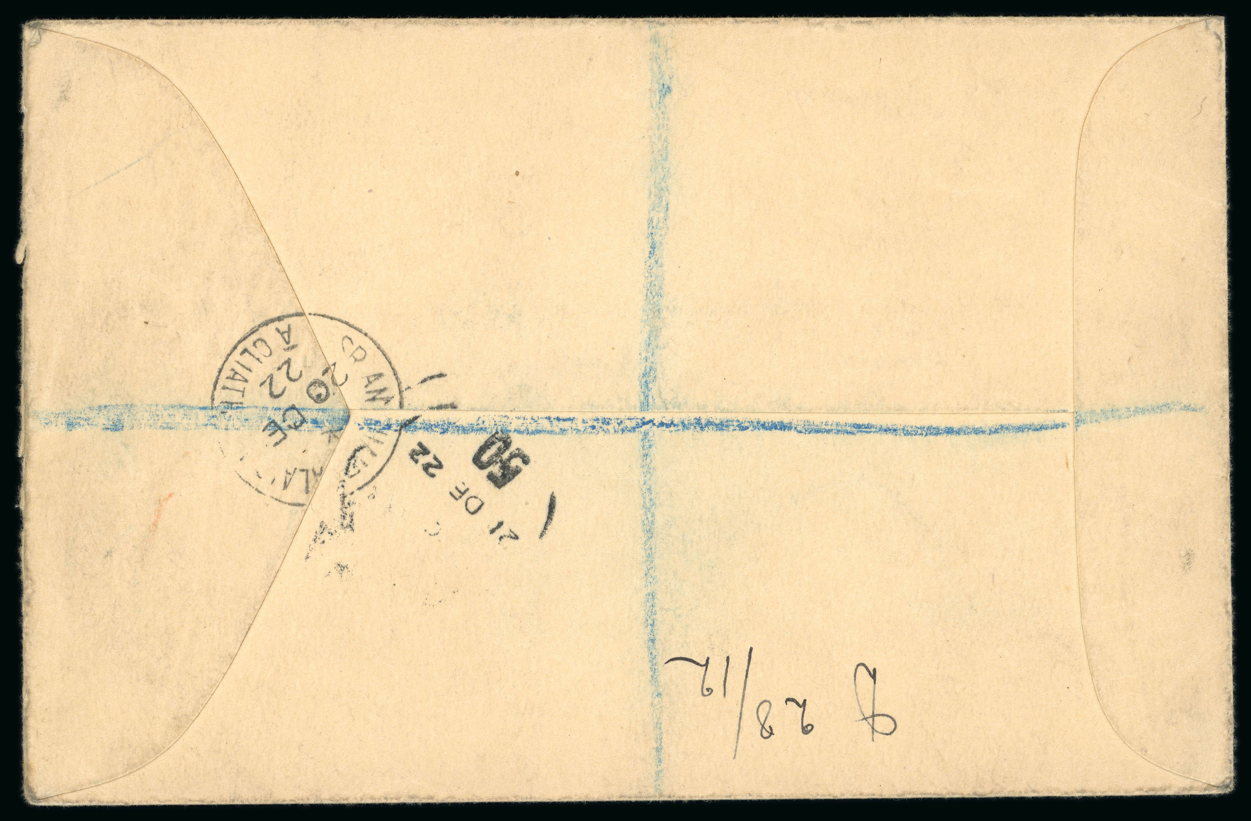 2d orange, die I, used single, tied AN PASÁISTE/20.DE.23 cds on cover sent locally, showing inverted overprint, very fine and scarce, cert. RPS (1981) (Hib. T16a, €375 for used single) (Image 1)