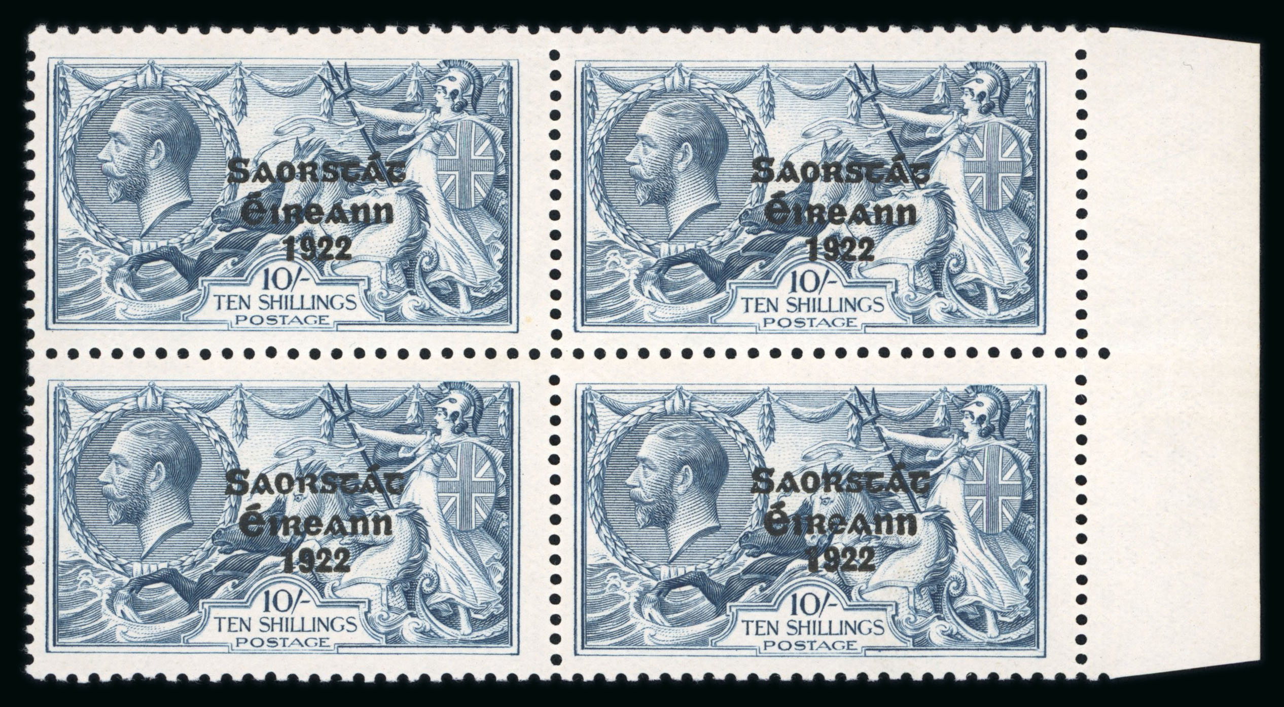 10s dull grey blue, mint nh right sheet marginal block of four, from the composite setting, extremely fresh and very fine (Hib. €1'160+) (Image