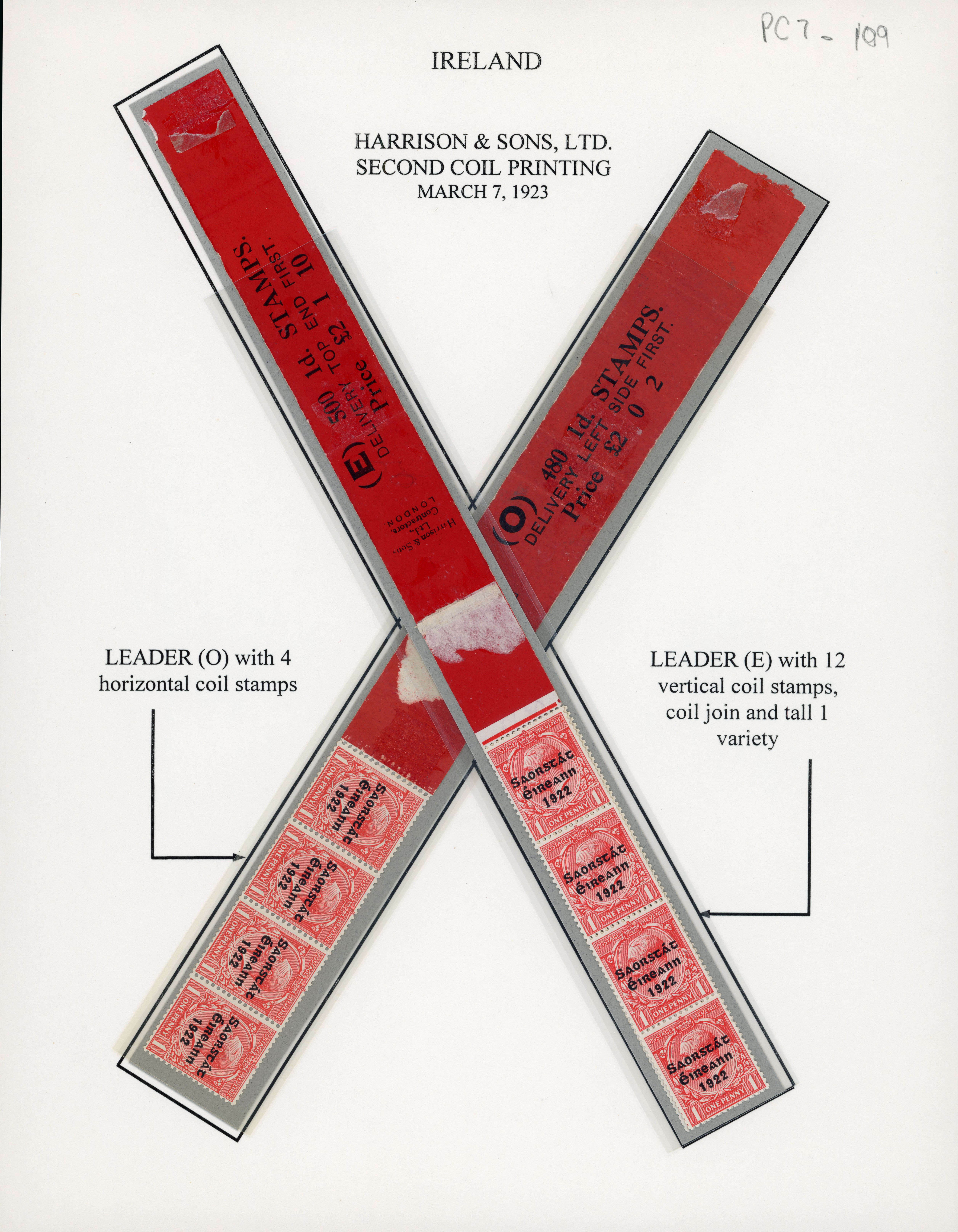 1/2d green and 1d scarlet, coil leaders lettered P, G, O, E, some seperations, all mounted and written up on two album pages, fresh, very fine and scarce (Hib. TL16-TL19, €730+) (Image 1)