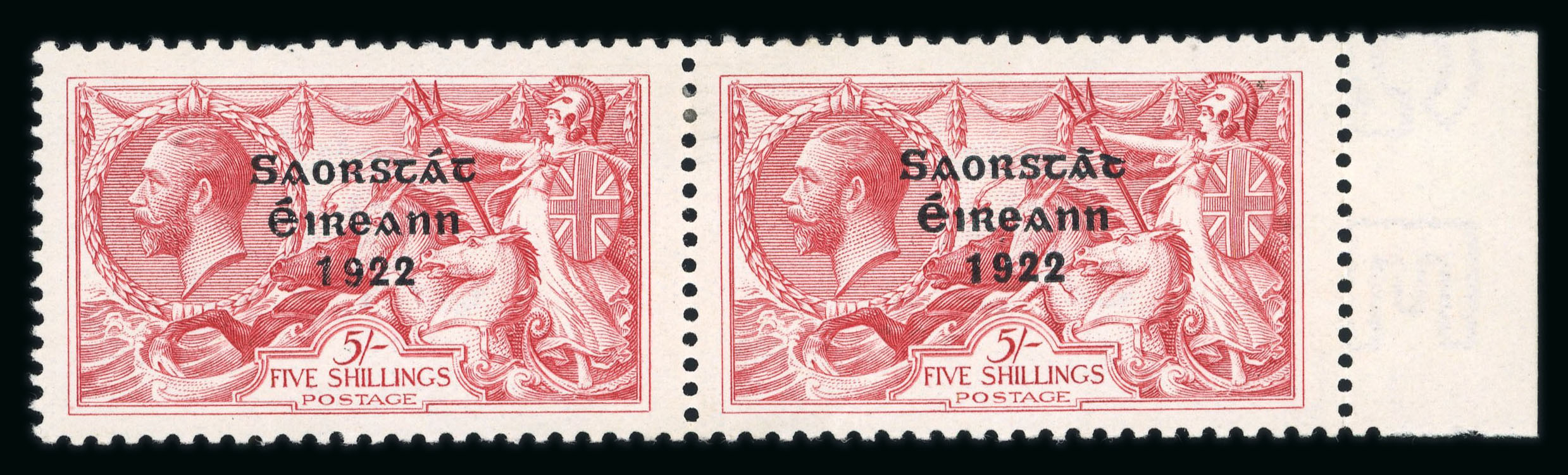 5s rose red, mint horizontal pair, right stamp showing "reversed accent" variety, very fine and scarce (Hib.T60b, €800+) (Image 1)