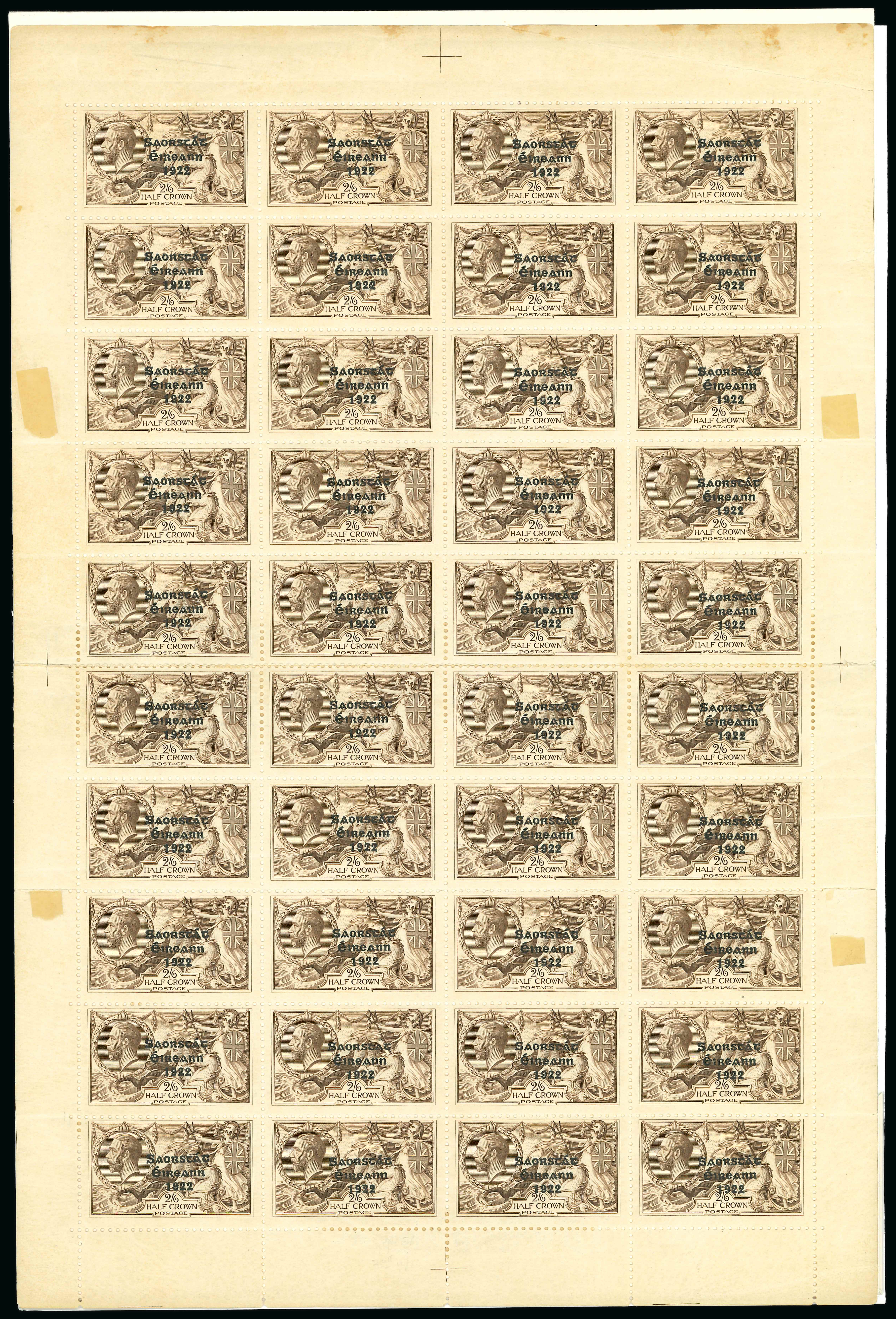 2s6d chocolate, mint nh bottom sheet, marginal block of twelve (12), showing missing accent position R9/2, some gum toning, a wonderful positional showpiece (Hib. €1'275+) (Image 1)