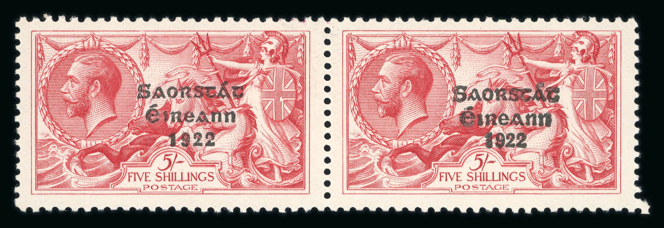 5s rose-red, mint horizontal pair, left stamp showing minor variety "accent touching A", fresh, fine and scarce (Hib. T70h, €575) (Image 1)