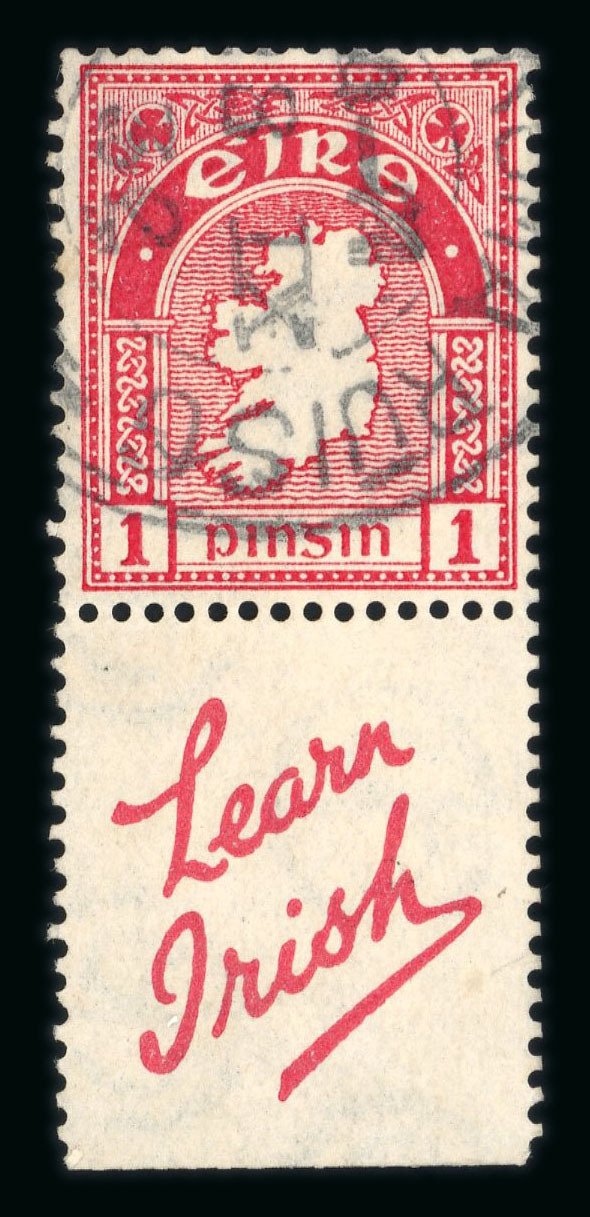 1933-35 SE 1d carmine, used single with booklet label Learn Irish, fine and scarce (Hib. D2B3, €240) (Image 1)