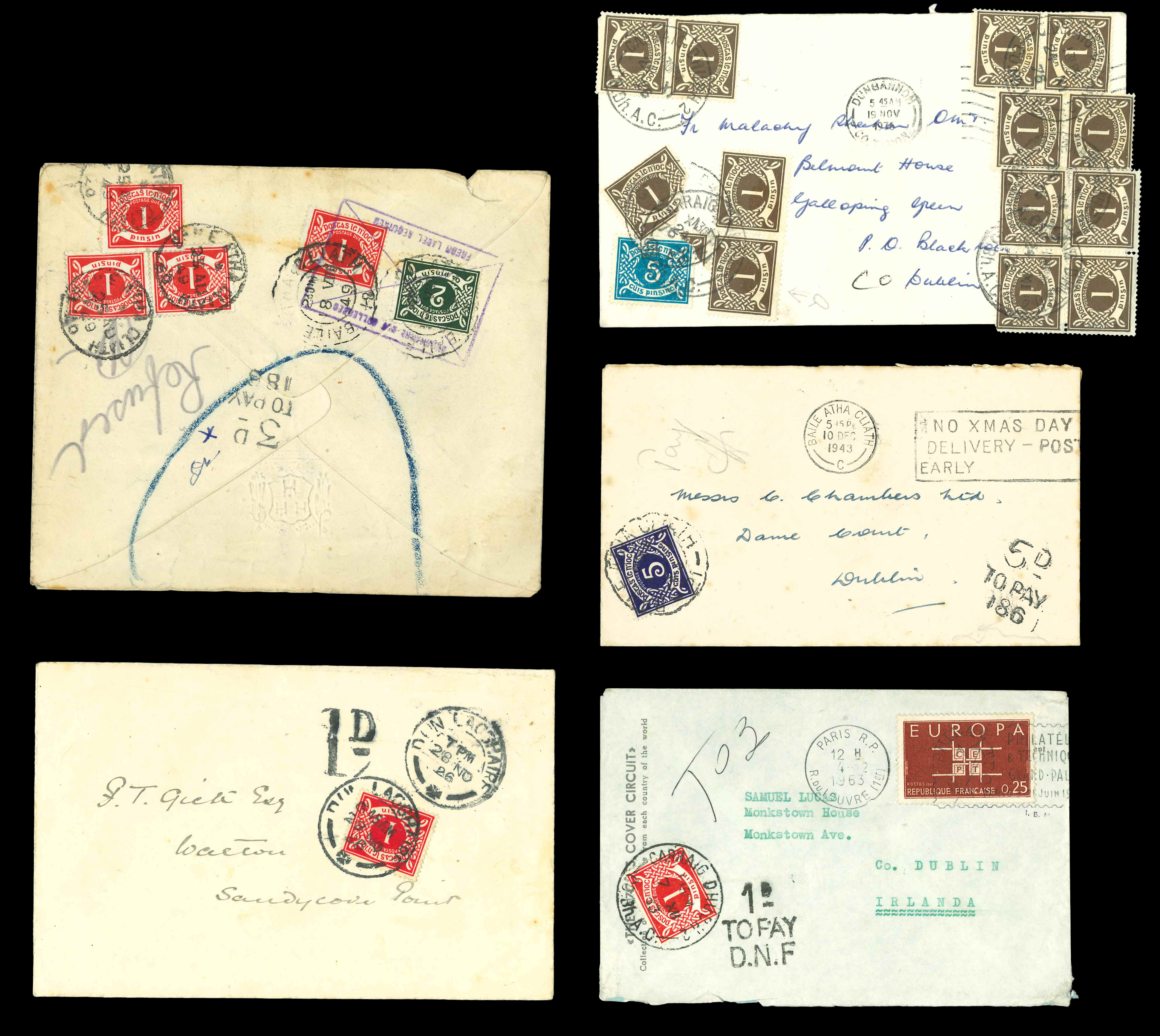 1926-1963 Postage Dues usages, interesting group of five covers, each with different postage due frankings, few faults (5) (Image 1)