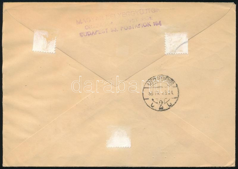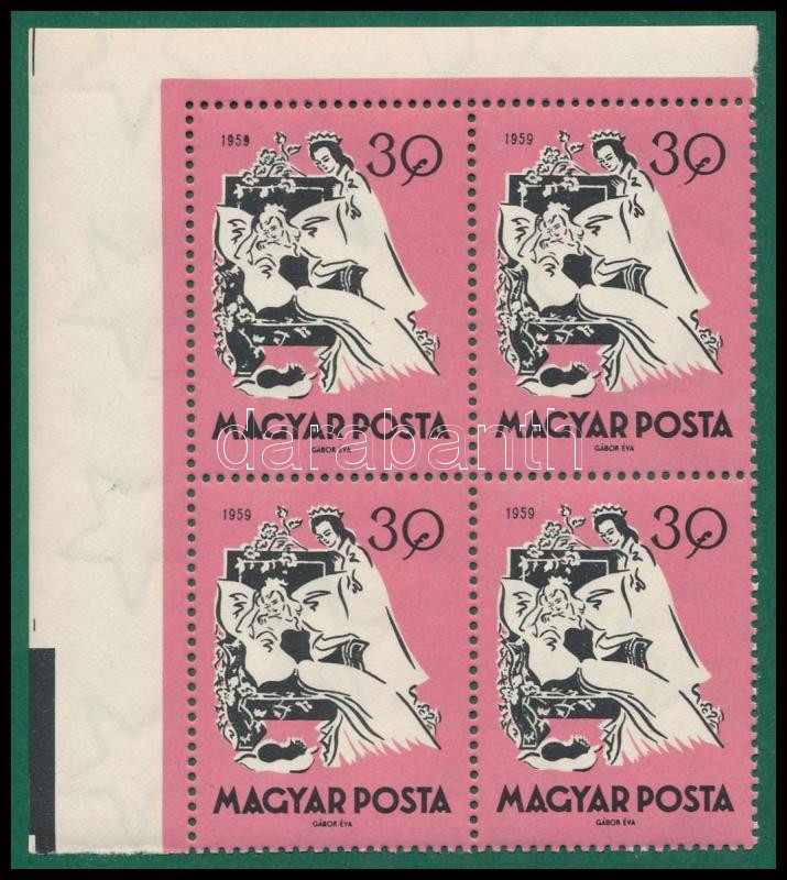 1958 Keszthely ifjúsági találkozó vágott szelvényes négyestömb óriási ívsarokkal / Mi 1531 imperforate corner block of 4 (Image)(Image 1)