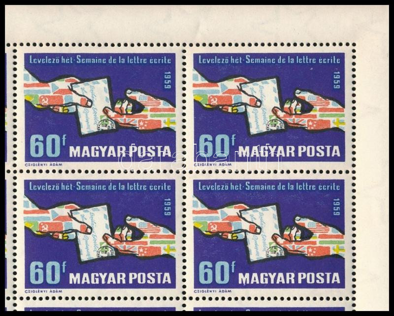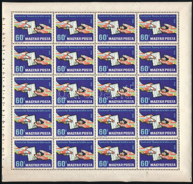 1959 Levelező hét teljes ív, a 8. ívhelyen lemezhibával / Mi 1628 complete sheet with plate variety (Image)(Image 1)