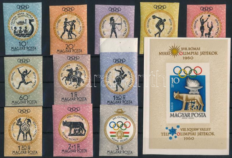 1960 Olimpia vágott sor és vágott blokk (ráncok) / imperforate set and block (creases) (Image)(Image 1)