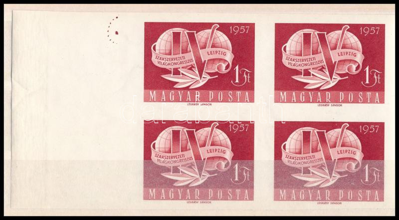 1957 Szakszervezet vágott négyestömb nagy ívszéllel (20.000) / Mi 1500 imperforate margin block of 4 (Image)(Image 1)