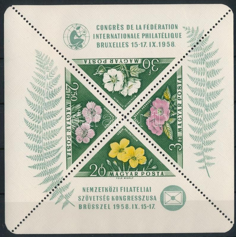 1958 FIP I. Virág vágott blokk (18.000) / Mi block 28 imperforate (Image)(Image 1)