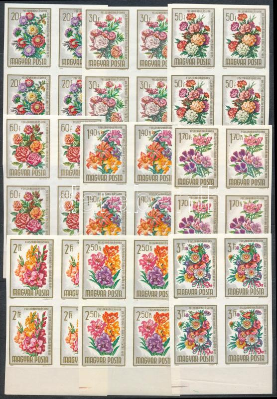1965 Felszabadulás (V.) - Virág (V.) vágott sor ívszéli 4-es tömbökben (16.000) / 2111-2119 imperforate margin blocks of 4 (Image)(Image 1)