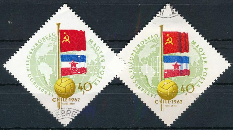 1962 Chilei labdarúgó 40f a függőleges világoskék raszternyomat (a zászlók ráncainak árnyékolása) hiányzik. A szakirodalomban ismeretlen tévnyomat filatéliai íváruból. / Mi 1831, wrinkles of the flags (light blue colour) omitted.. (Image)(Image 1)