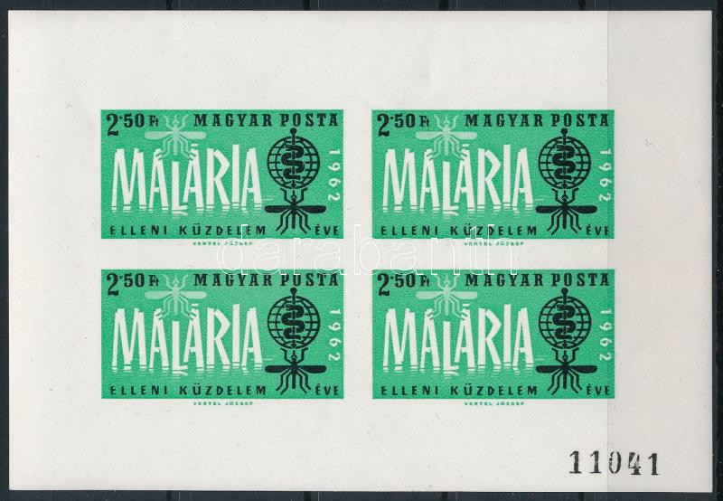 1962 Malária vágott kisív (ráncok) / imperforate mini sheet (creases) (Image)(Image 1)