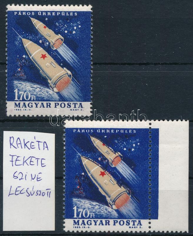 1964 Az űrkutatás eredményei 1,70Ft "a rakéta fekete kontúrja lecsúszott" + támpéldány / Mi 1995 shifted black colour (Image)(Image 1)