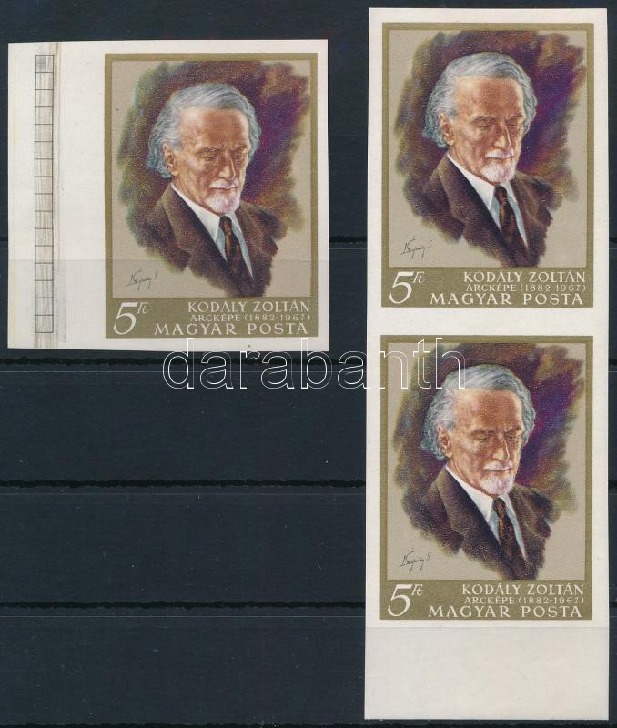 1968 Kodály Zoltán 3 db vágott bélyeg (betapadásnyomok / gum disturbances) (Image)(Image 1)
