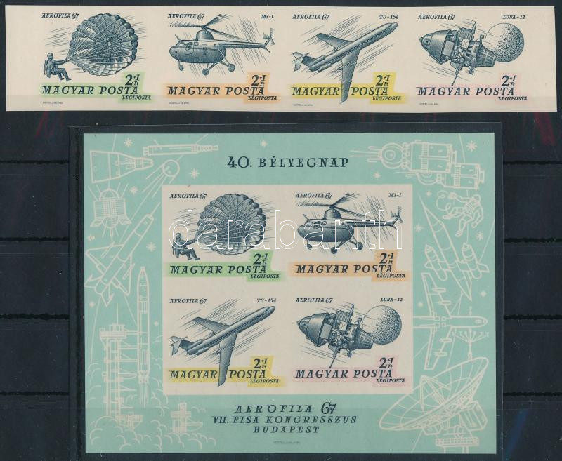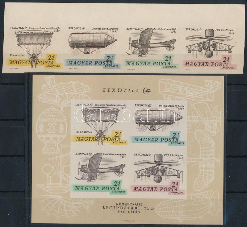 1967 Aerofila vágott négyescsík és blokk / imperforate stripe of 4 and block (Image)(Image 1)