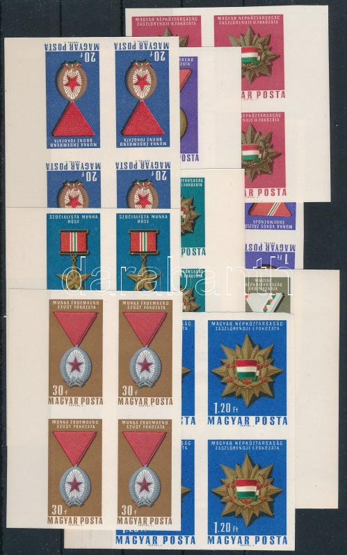 1966 A Magyar Népköztársaság polgári kitüntetései vágott négyestömbök (14.000) / Mi 2222-2230 imperforate blocks of 4 (Image)(Image 1)