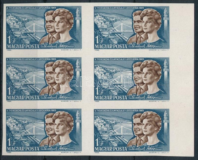 1965 Évfordulók-események Tyereskova ívszéli vágott hatostömb / imperforate block of 6 (Image)(Image 1)
