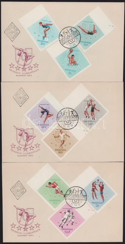 1965 Universiade ívszéli vágott sor 3 db FDC-n / imperforate set on FDC's (Image)(Image 1)