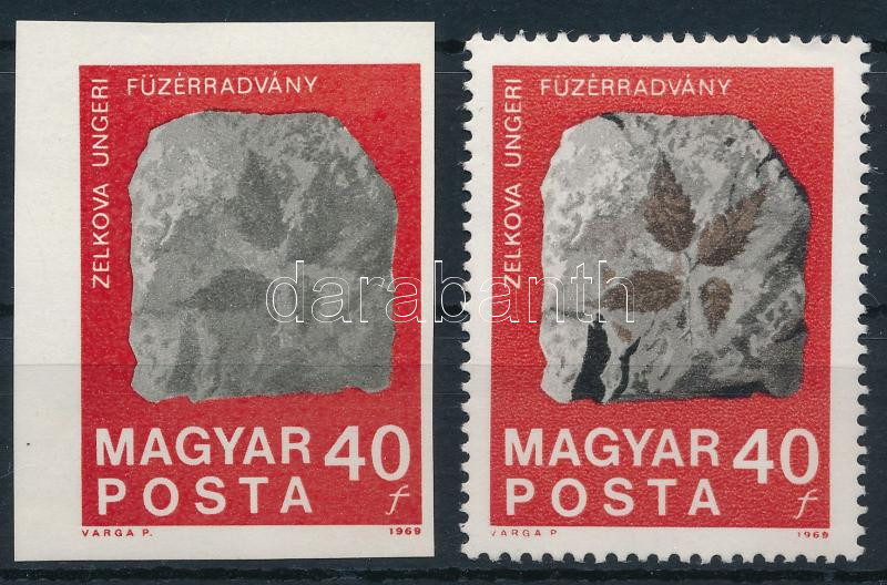 1969 100 éves a Magyar Állami Földtani intézet 40f vágott bélyeg a barna színnyomat nélkül + támpéldány (40.000) / Mi 2520 brown colour omitted