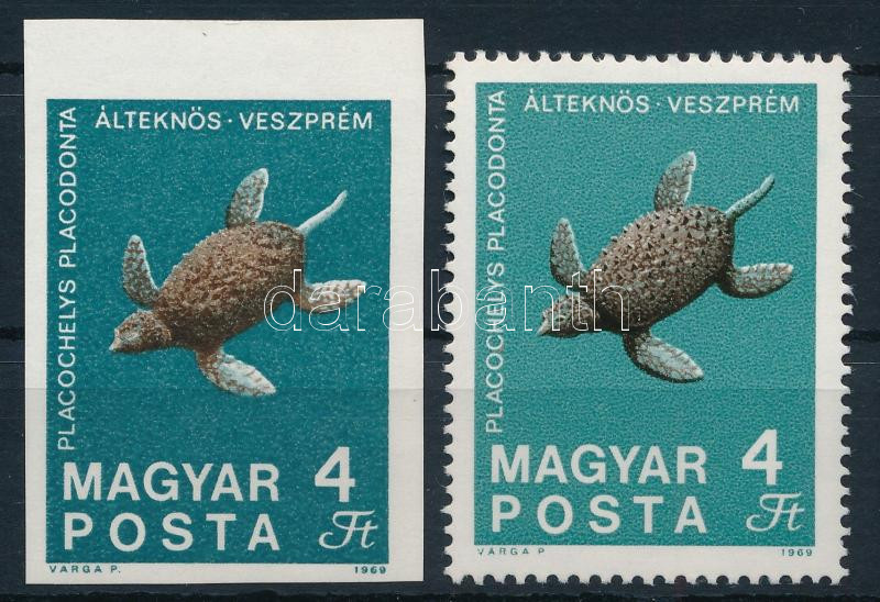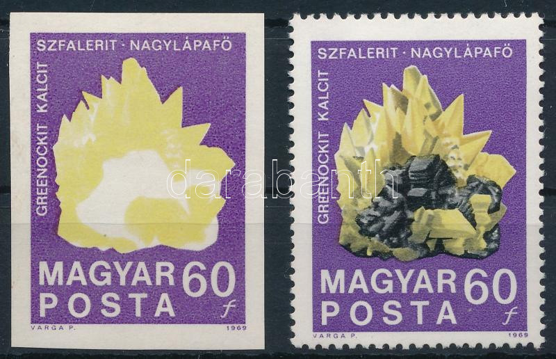 1969 100 éves a Magyar Állami Földtani intézet 60f vágott bélyeg fekete színnyomat nélkül + támpéldány (40.000) / Mi 2521 black colour omitted