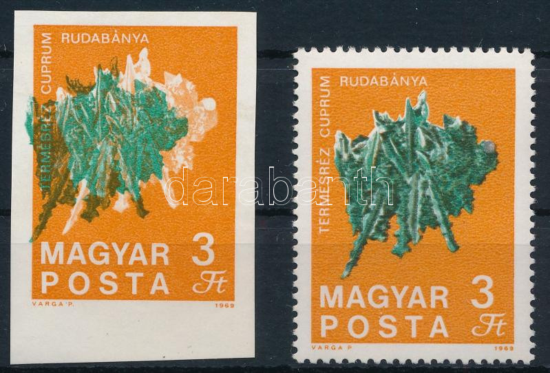 1969 Földtani intézet 3Ft vágott fázisnyomat, a zöld szín látványos elcsúszásával / shifted green colour (Image)(Image 1)