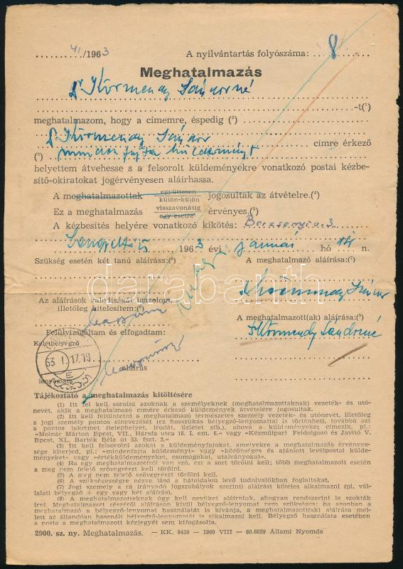 1963-1977 Meghatalmazás 8 db bélyeggel "LENGYELTÓTI" / Authorisation form with 8 stamps (Image)(Image 1)