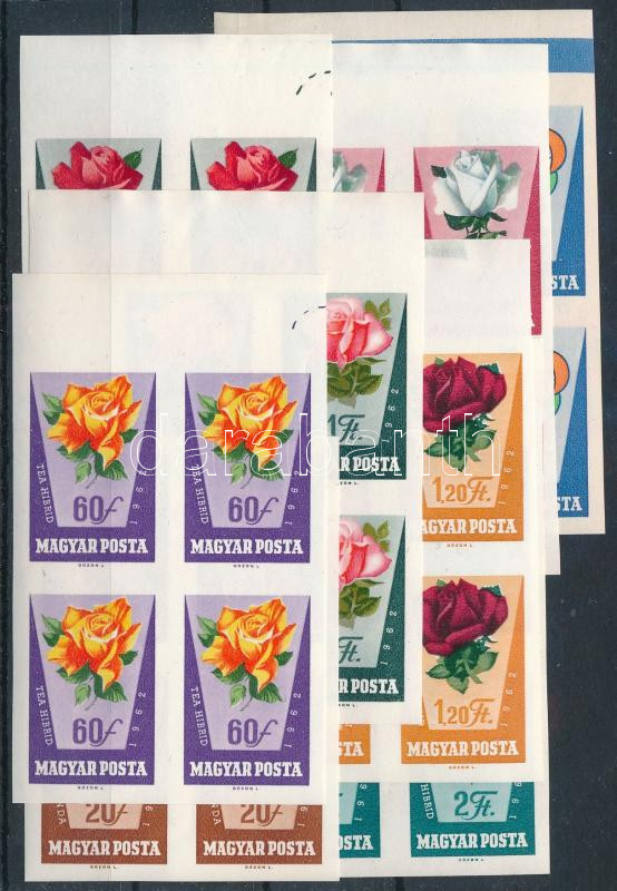 Rózsák vágott sor ívszéli négyestömbökben (36.000) / Mi 1845 + 1856-1862 imperforate margin blocks of 4 (Image)(Image 1)