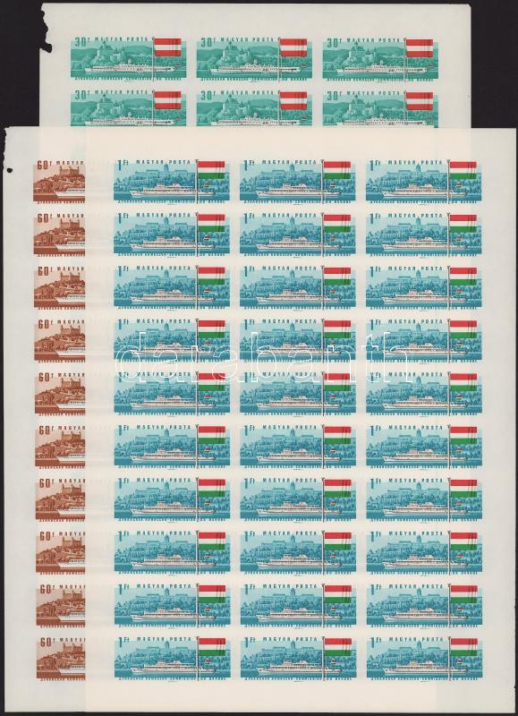 Duna-Bizottság teljes vágott ívsor (1.050.000) (sérült és gumihibás ívsarkak) / Mi 2323-2329 set in imperforate sheets (damaged sheet corners with gum disturbances)