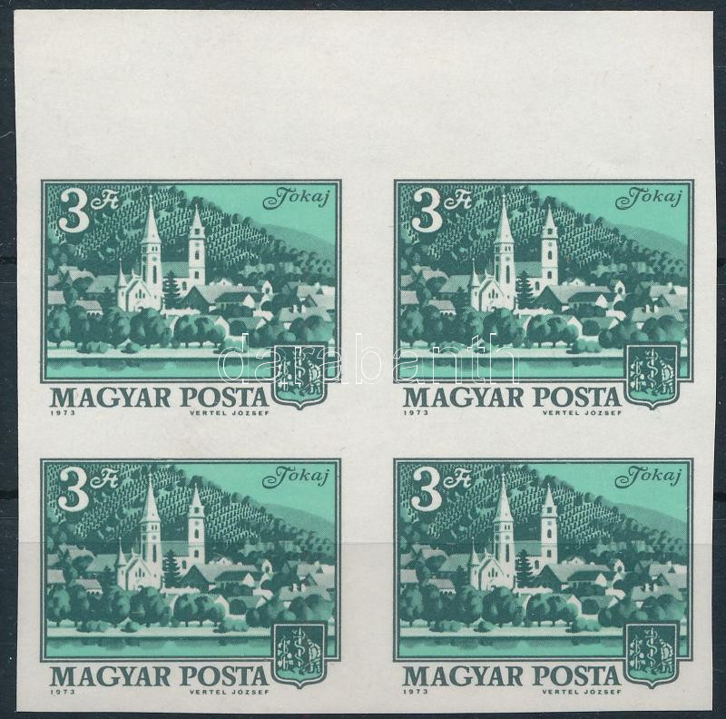 1973 Tájak-városok 3Ft vágott ívszéli négyestömb (ujjlenyomatok) / imperforate margin block of 4 (fingerprints) (Image)(Image 1)