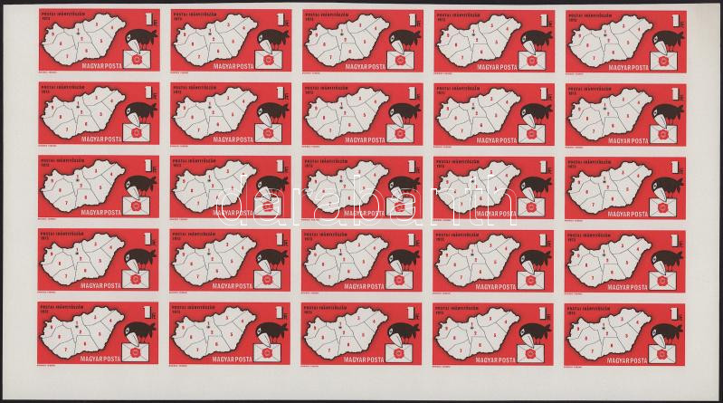 1973 Postai irányítószám-rendszer I. vágott 25-ös félív (30.000) / Mi 2831 imperforated block of 25 (Image)(Image 1)