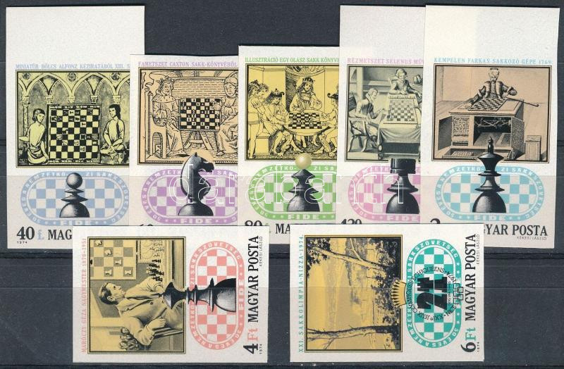 1974 Sakk II. vágott sor, közte ívszéli értékek / Mi 2957-2963 imperforate set (Image)(Image 1)