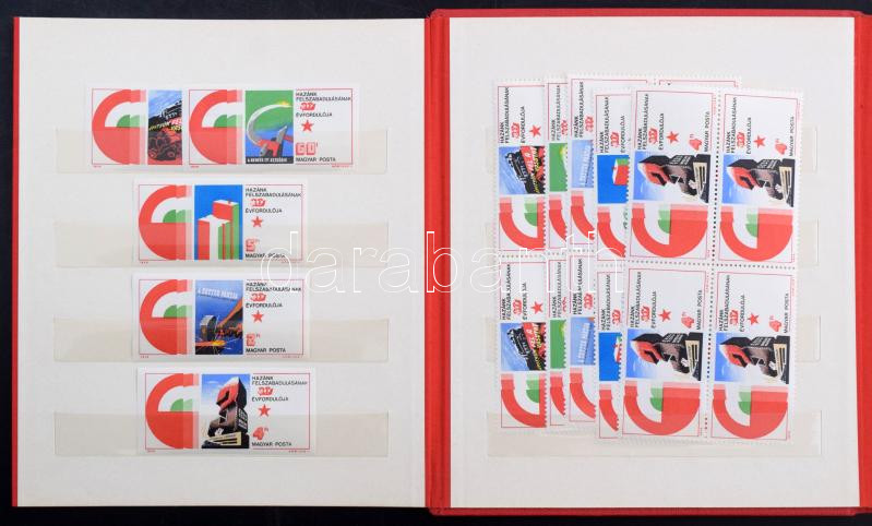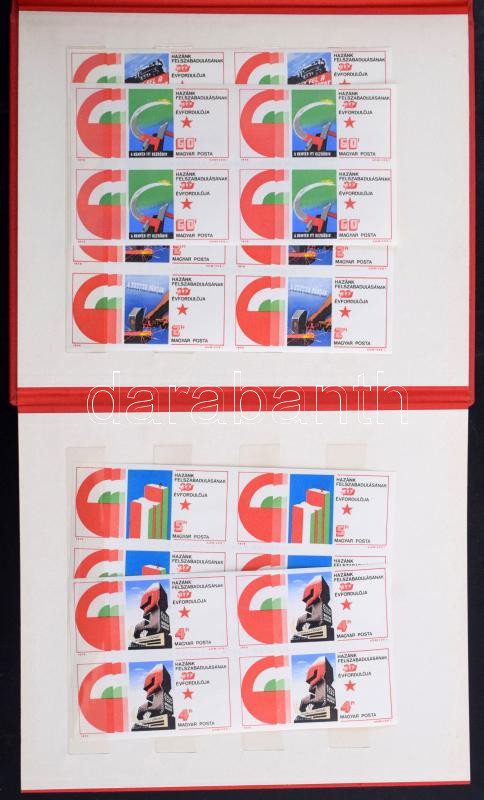 1975 Felszabadulás ajándék eredeti postai szett, benne az ajándék vágott négyestömbök "A Magyar Posta ajándéka", vágott sor és fogazott sor négyestömbökben / Mi 3026-3030 present of the post set (Image)(Image 1)